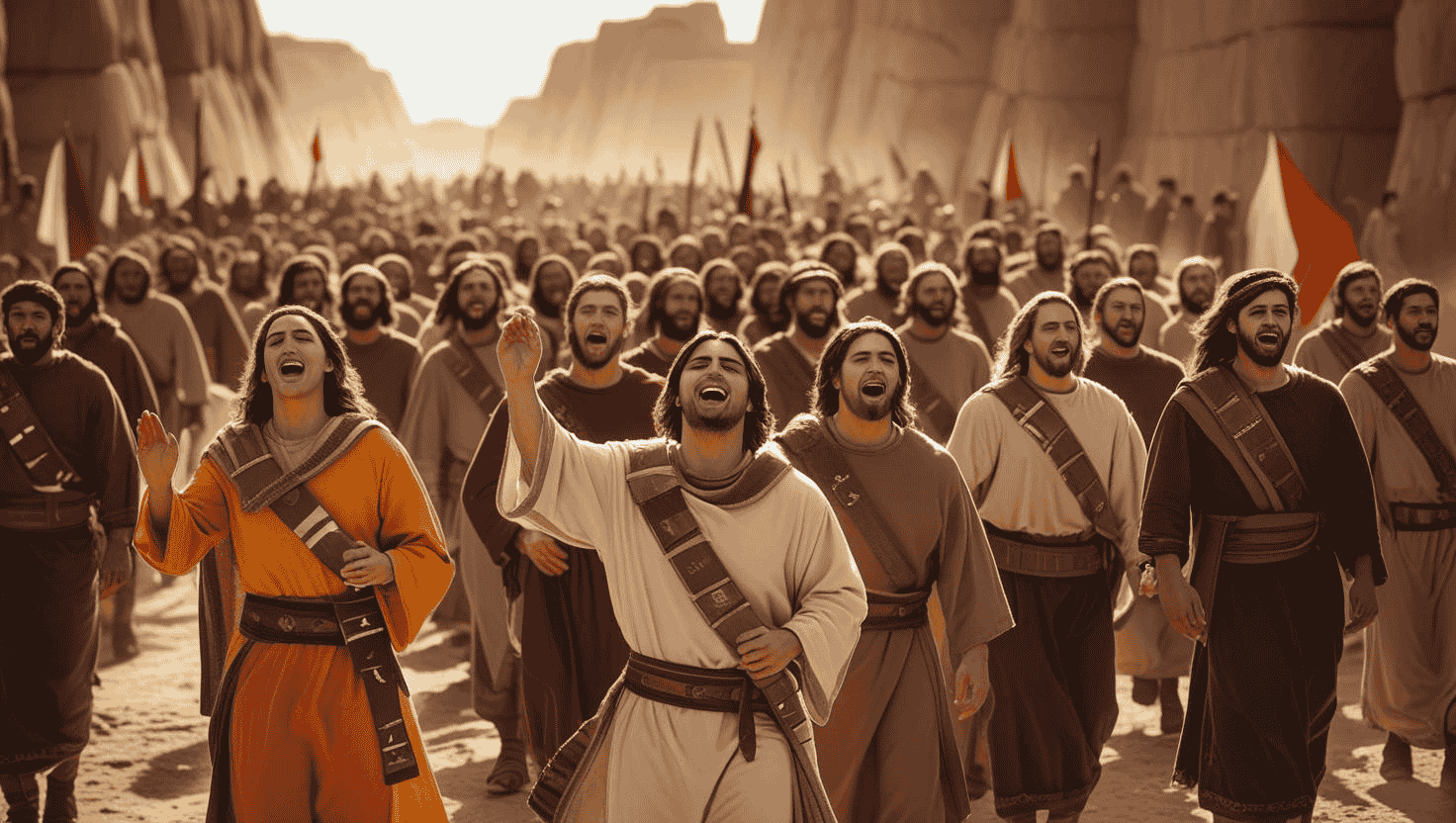 Strategi Perang Paling Aneh Sedunia: Apa yang dilakukan Yosafat setelah mendapat janji itu? Ia tidak menempatkan pasukan paling kuat di barisan depan. Sebaliknya, ia menempatkan para penyanyi dan paduan suara di depan! Mereka berjalan menuju medan perang sambil menyanyikan: "Nyanyikanlah nyanyian syukur bagi TUHAN, bahwasanya untuk selama-lamanya kasih setia-Nya!" (ayat 21).